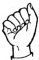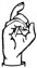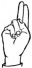 На ћирилици написано ПАУН БОЈИЋ састоји се из 9 слова [?]. Исписано ћириличном једноручном азбуком за глувонеме: